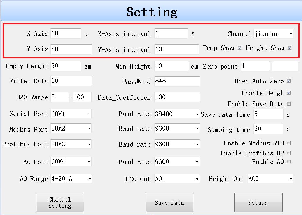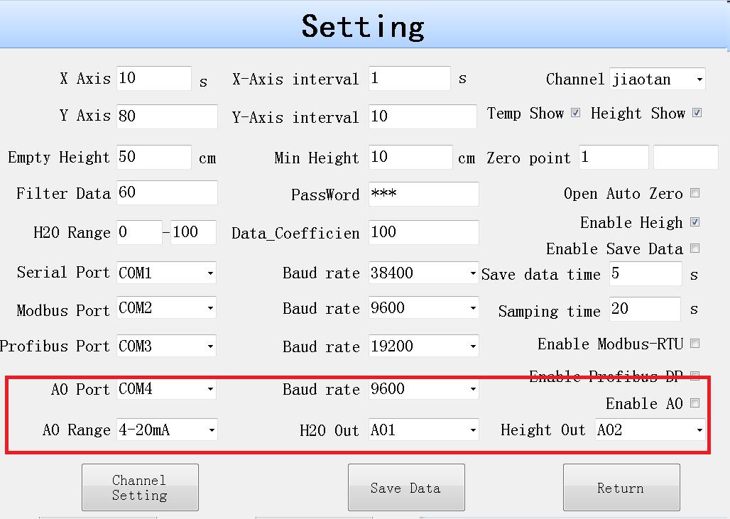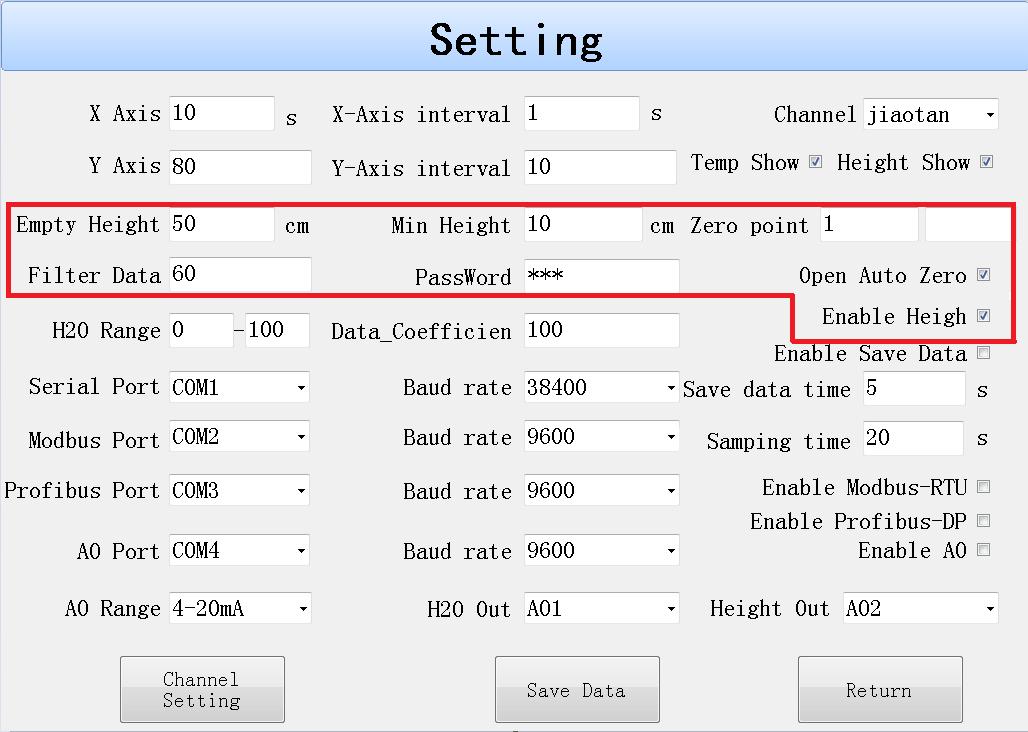 注意:水分輸出和高度輸出不能配置同一通道。