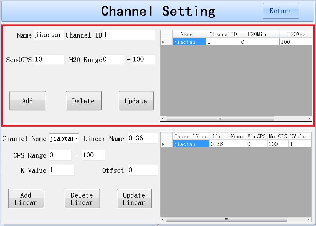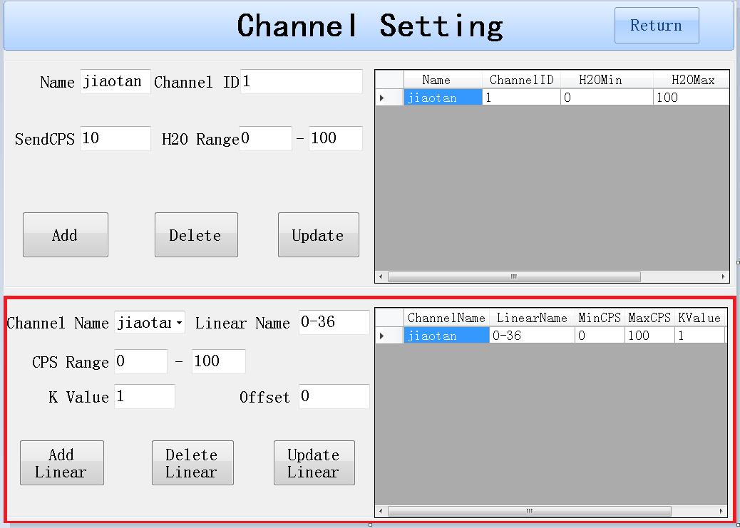 注意:每一個通道可以創(chuàng)建多個線性模型。但是CPS Range區(qū)間不能交叉,如果發(fā)生了交叉,則以最后一個線性模型獲取的數(shù)據(jù)為準。只有創(chuàng)建線性后,再能在取樣界面選中對應(yīng)的線性進行取樣。